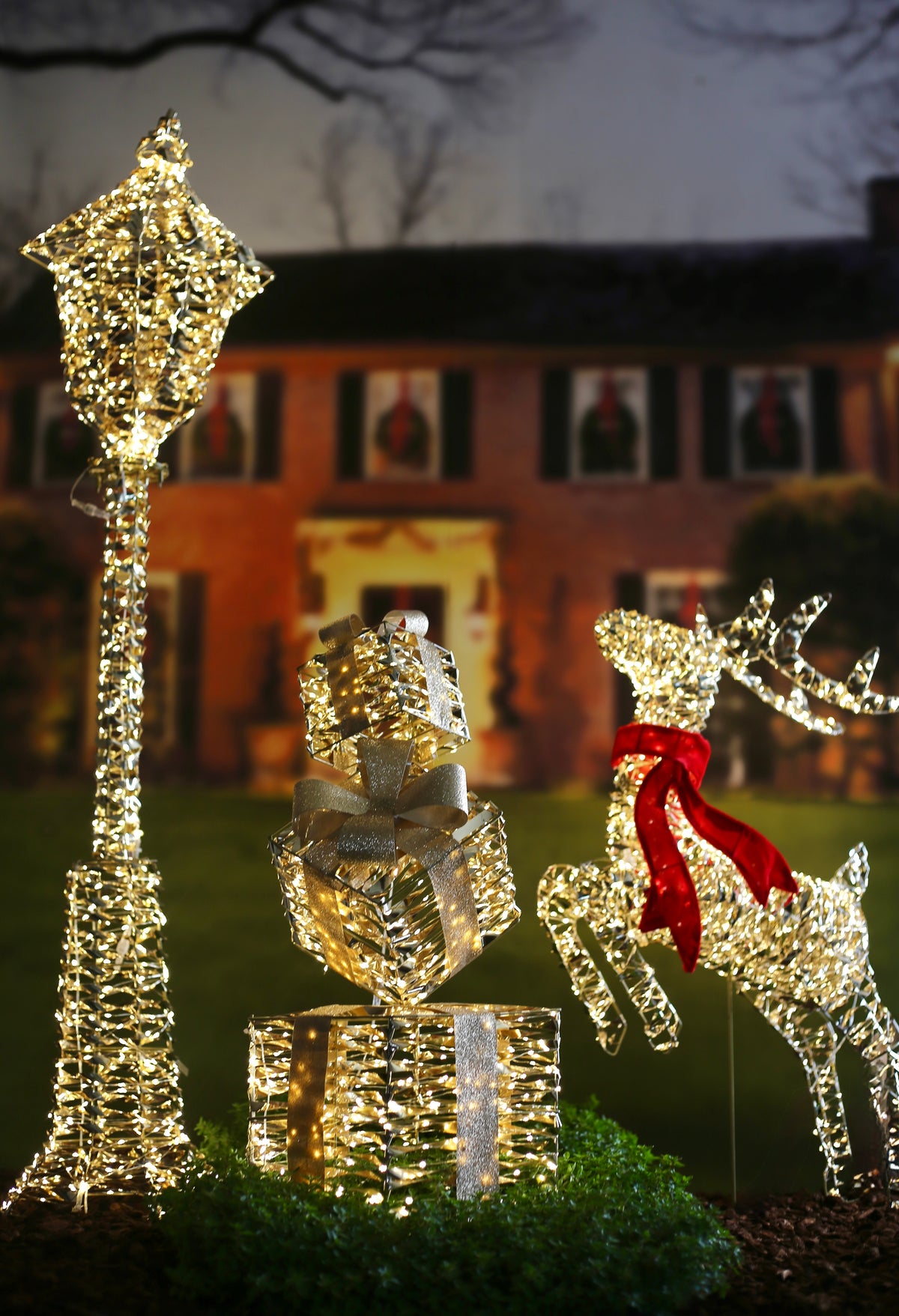 Transform your home into a warm and welcoming winter wonderland with our Outdoor Holiday Lighting Collection. From sparkling reindeer and glowing gift boxes to stately lighted street lamps and twinkling shapes, these pieces create a magical atmosphere day and night. Each design features hundreds of warm white micro LEDs woven into durable metal frames, bringing brilliance and dimension to porches, pathways, patios, and garden displays.