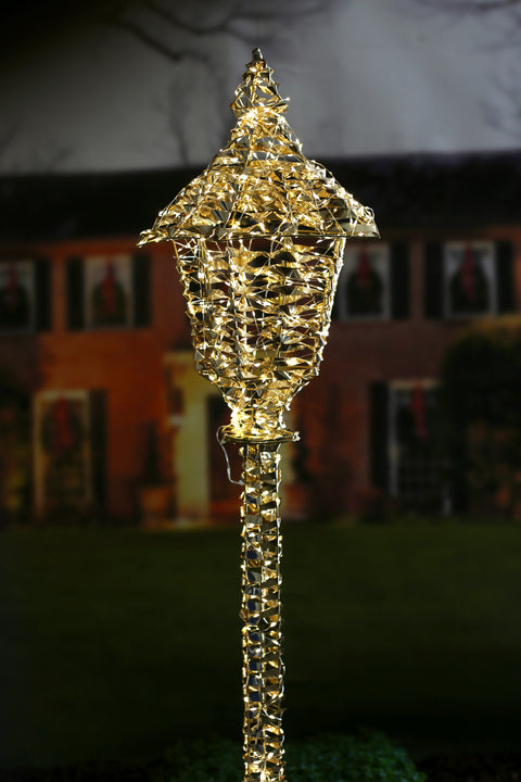 Add a charming, vintage-inspired glow to your holiday display with the Lumineo Micro LED Street Lamp. Standing at 4.9 feet tall, this elegant wire-frame lamp is illuminated with 720 warm white micro LEDs and finished with a classic red holiday bow—perfect for creating a festive, welcoming ambiance.