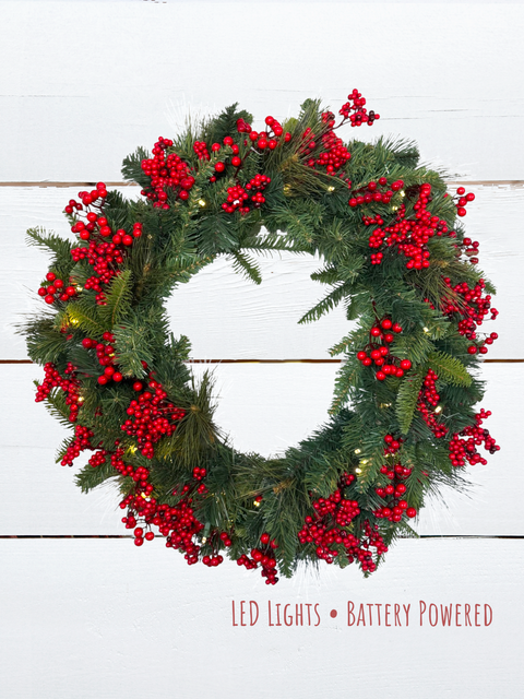Pine & Berry Wreath – 30" (Artificial, Pre-Lit)